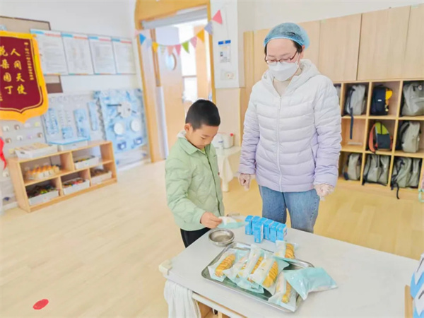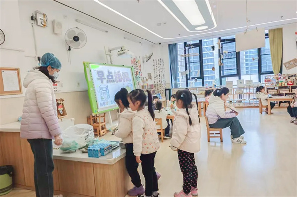 营养早点,解锁独立小本领 早点环节是展现孩子们自主能力的第一站。早点播报员自信登场,清晰地介绍今日餐点。接着,在教师的引导下,孩子们有序分组、排队取餐。进餐时,他们手扶餐盘、安静有序。进餐后,他们熟练地清洗餐具,将餐盘摆放至指定位置。随后,孩子们自主选取玩具进行餐后活动。整个过程中幼儿独立自主,教师全程引导,保育老师保障餐食安全与环境整洁,让家长真切感受到幼儿园生活教育的细节与温度。