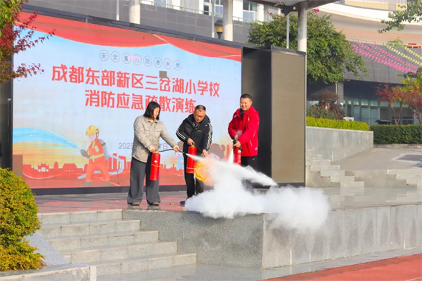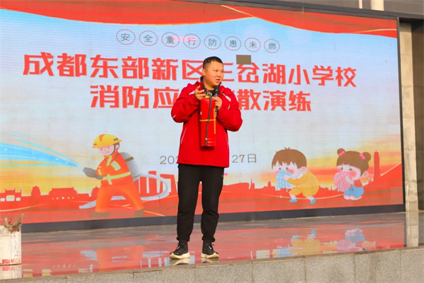 为强化师生消防安全意识,提升应急逃生与自救能力,成都东部新区三岔湖小学于2025年11月27日成功开展消防应急演练活动。本次演练严格遵循“预防为主、防消结合”方针,程序规范、环节紧凑,重点强化学生安全技能培养。 演练前培训:知识技能双提升 演练前,学校组织全体师生开展消防安全专题培训。培训内容涵盖火灾成因、校园火灾隐患排查、逃生路线规划及应急处置原则。针对学生特点,教师通过动画演示、互动问答等形式,重点讲解湿毛巾捂口鼻、弯腰低姿逃生等关键动作。