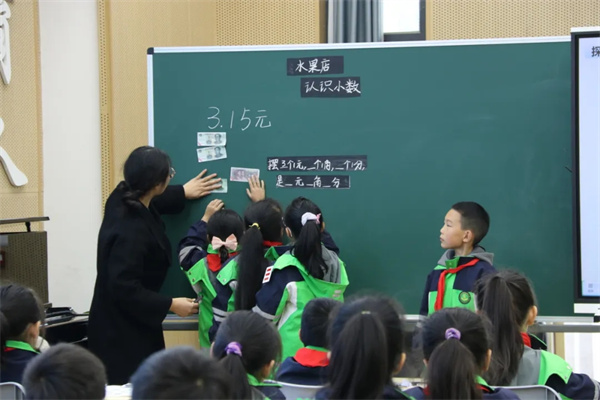 课例展示 实践是检验真理的唯一标准,活动伊始,黄甲小学的聂书英老师和三年级5班的孩子们带来北师大版三年级上册《水果店——认识小数》一课的展示,为在场师生呈现了一节兼具实用性与创新性的精彩研究课,同时为老师们提供了数据驱动课堂改进的鲜活案例。