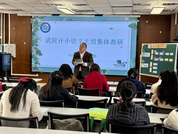 为深入践行新课标理念,深化课堂教学改革,激发学科团队教研热情,2025年11月19、20日上午,成都市武侯计算机实验小学(以下简称:武侯计小)举办了语文、数学大组集体教研活动。本次活动以核心素养为导向,聚焦教学实践探索,通过课例展示、主题分享、互动研讨等形式,全面呈现了武侯计小语文、数学团队共学共研的教学研讨现场。 语文大组集体教研