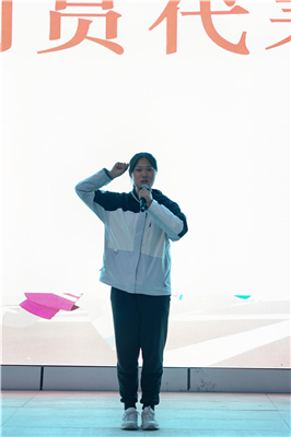 运动员代表与裁判员代表依次宣誓。学生代表杨茂睿紧握右拳,郑重承诺:“全力以赴、尊重对手、遵守规则”;裁判员代表王海夷老师庄严表态:“严守公平、公正裁决”。简短却有力的誓言,为赛场立下诚信与责任的准则。