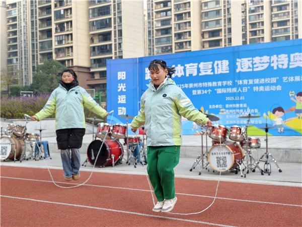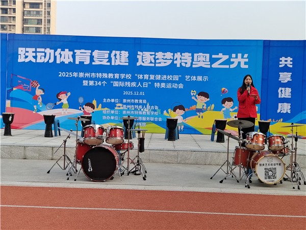 2025年12月1日上午,阳光倾洒,崇州市特殊教育学校内洋溢着阵阵笑声和欢呼声,一场充满活力与希望的体育复健进校园艺体展示暨“国际残疾人日”特奥运动会在此盛大举行。崇州市教育局党组成员、副局长孙照辉,崇州市残疾人联合会党组成员、副理事长王昊,崇州市志愿服务联合会会长卞永强等领导及来宾亲临现场,共同见证特殊学生在赛场上绽放光芒。