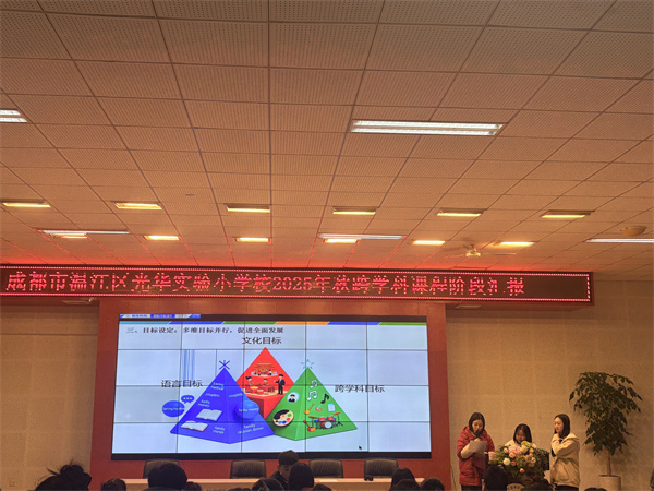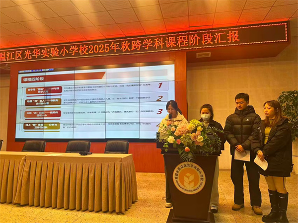 2025年11月25日晚与26日晚,成都市温江区光华实验小学校(以下简称:光华实小)“从课堂向未来出发”2025年秋季学期跨学科课程阶段汇报活动顺利开展。本次活动集中展示了学校各年级在跨学科主题学习领域的阶段性成果,通过分享不同学科的融合实践与创新探索,为持续推动学校课程改革与育人方式变革注入新的活力。