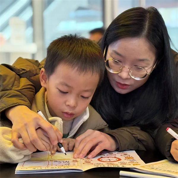 随后的主题讲解环节,工作人员以通俗易懂的语言介绍了预习复习、物品整理、专注做事等九个学习好习惯,结合趣味案例让孩子们理解好习惯的重要性;同时揭秘“21天效应”的科学原理,鼓励孩子们以“自律小达人”的姿态坚持打卡,见证坚持的力量。 实践为契 亲子共行 在核心实践环节,各亲子家庭围绕“九个好习惯”共同商议选定2-3个近期重点目标,亲手设计专属的“21天习惯打卡表”,将习惯养成目标转化为充满仪式感的家庭成长契约。