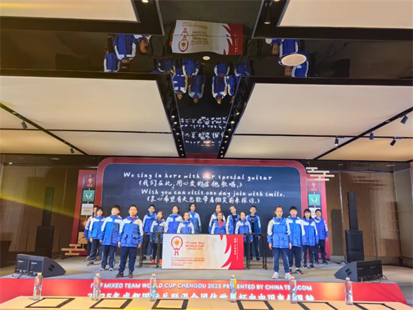 初冬微寒,银杏洒金,成都市棕北小学童韵悠悠合唱团再次迎来高光时刻——继去年亮相世乒赛开幕式后,他们又一次登上2025年国际乒联混合团体世界杯抽签仪式及开幕式的舞台,以一曲《玉林之歌》向世界传递成都的烟火温度与现代风采。
