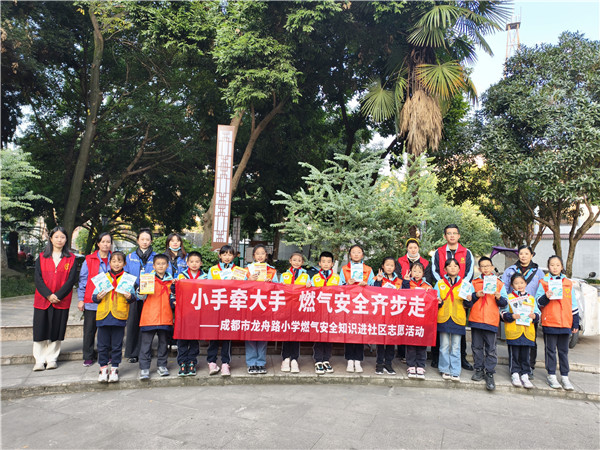为普及燃气安全知识,提高社区居民安全防范意识,成都市龙舟路小学联动成都燃气公司和东湖街道永兴社区,组织少先队员志愿者走进周边社区,开展“小手牵大手 燃气安全齐步走”燃气安全知识进社区志愿活动。
