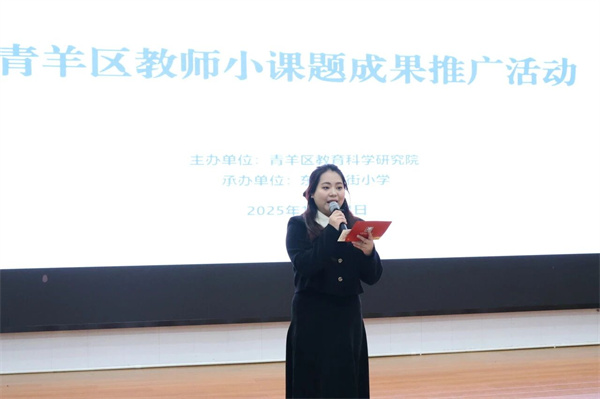 为深入推动教师小课题研究向教学实践转化,充分发挥科研对课堂改进的引领作用,2025年12月24日,青羊区教育科学研究院在成都市东城根街小学举办了教师小课题成果推广活动。 专家领航,学术高位引领 本次推广活动到场的专家有青羊区教育科学研究院副院长叶剑,青羊区教育科学研究院音乐教研员蒋英,青羊区教育科学研究院教育改革发展研究所所长王傲红,青羊区教育科学研究院教育改革发展研究所研究员曹艳,青羊区教育科学研究院教育改革发展研究所研究员刘静,青羊区教育科学研究院教育改革发展研究所研究员毛雅昕,青羊区教育科学研究院教育改革发展研究所研究员仁青草。 此外,各片区科研负责人、学校科研主任及2025年小课题负责人共同参与。
