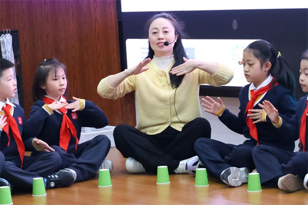 课堂映照,研究落地生花 汪慧老师执教展示课《春之回旋曲》,呈现科研成果在课堂中的实际应用,通过杯子游戏、身体律动等多觉联动活动激发学生感知,借助视觉符号与动态图谱实现音乐要素的可视化表达,引导学生在合作创编中完成思维跨越与艺术创造。