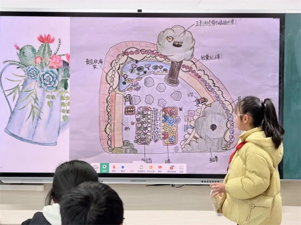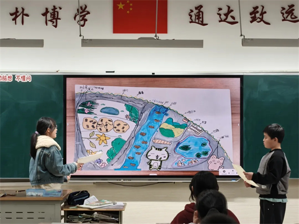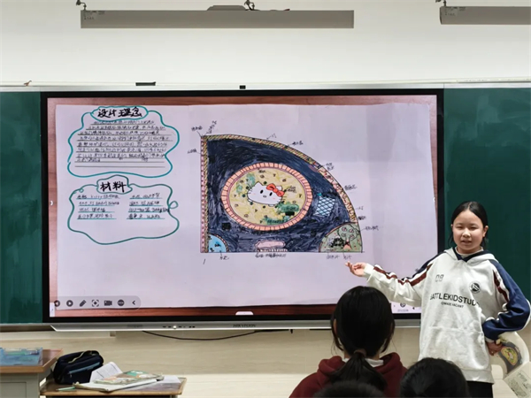 随后以班级为单位,各小组进行班级汇报展示,小组代表结合精心准备的PPT或手绘图,从校园花台现状分析、现存问题梳理、改造方案展示、设计理念阐释等方面进行了精彩分享。台下同学认真倾听、积极反馈,在思维碰撞中为彼此的方案提出优化建议。最终,各班评选出了2个校园花台优秀设计方案,课后将进一步完善,为后面的年级汇报展示活动奠定基础。