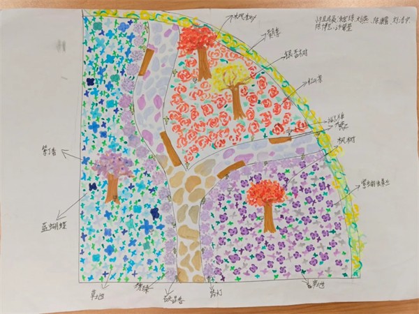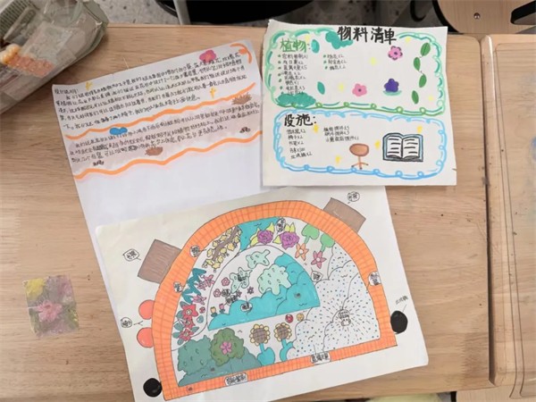 指尖绘绿意,童心筑花园。为践行“五育并举”教育理念,让学生在实践中提升劳动意识与协作能力,近日,成都市王贾桥小学校在六年级继续开展了《我的花园学校》校园花台改造,小组设计班级汇报展示活动。 各小组基于前期校园花台调研结果,围绕美观性、功能性、生态性三大核心维度进行班级小组汇报准备,小组同学们分工协作,运用A3、A4纸张绘制改造草图,细致标注新增绿植种类、设施布局及调整细节,同时认真梳理物料清单,详细说明设计意图。