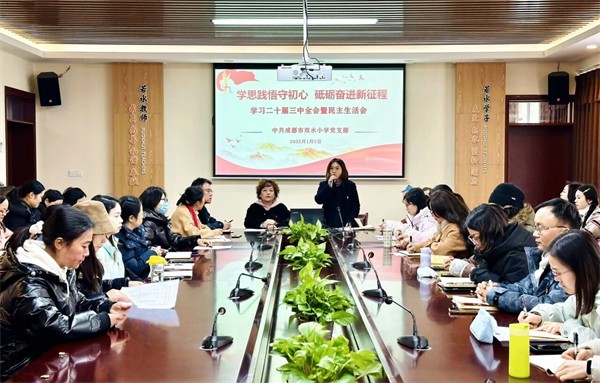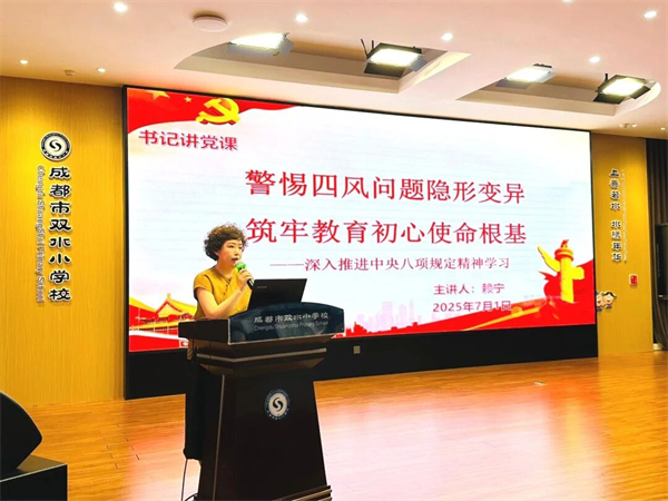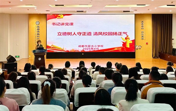 回望2025年的若水校园,每一份耕耘都有回响,每一段成长都掷地有声。成都市双水小学以党建为引领,让德育扎根心灵,让AI赋能课堂,让教学焕发活力,让后勤浸润暖意,绘就了一幅“育人为本、全面发展”的成长画卷。让我们翻开这份年度“成长图鉴”,重温那些闪光的瞬间与坚实的足迹。 若水党建 铸魂育人·政治领航 深入学习贯彻习近平新时代中国特色社会主义思想,锚定“为党育人、为国育才”根本方向,以“第一议题”为纲、“三会一课”为基,通过12次理论研学、2次专题研讨、6次书记党课实现党员思想淬炼全覆盖,把相关会议精神转化为办学治校的政治自觉与行动自觉。
