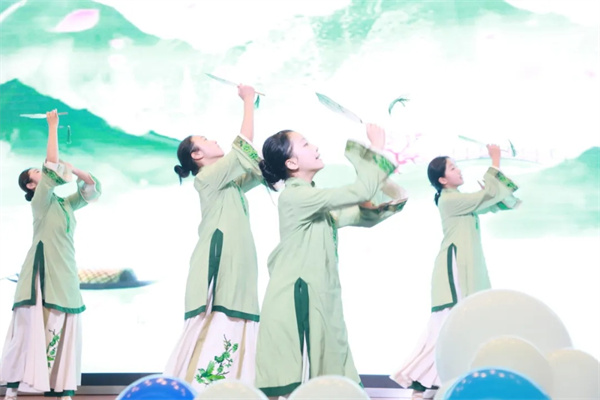 古典舞《清风徐来》 操场之上·青春激扬 平日洒满汗水的跑道与绿茵,摇身一变成为了同学们自信展示的舞台。运动场上,他们身手敏捷、默契传递、帅气投篮……处处显着独属于青春的朝气与蓬勃的生命力。