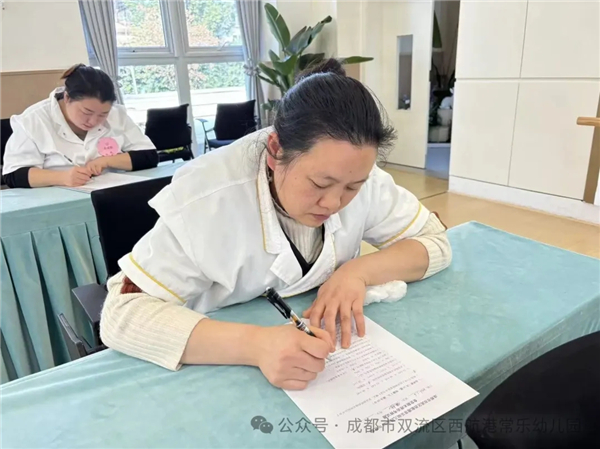 为全面提升保育教师及后勤队伍专业素养与应急处理能力,确保校园安全防线稳固无虞。近日,成都市双流区西航港常乐幼儿园开展了2025年秋期保育教师及后勤人员期末技能考核活动。活动围绕理论考核、实操考核展开,针对不同岗位特性设置了精准化的考核内容。通过分层分类的考核模式,有效检验了各岗位人员的理论功底与实践能力,为构建平安校园奠定了坚实基础。 理论考核作为本次期末技能考核活动的重要组成部分,严格按照既定方案有序推进。保育教师们凭借扎实的专业知识,在儿童照料与日常安全防护知识考核中展现出极高的专业素养。食堂从业人员以严谨态度对待食品安全法规与卫生操作规范考核,精准作答各项法规要点,充分彰显了食堂人员的专业素养。工勤人员面对校园设施维护与突发事件应对策略考核,沉着冷静、应对自如,安保人员在安全保卫技能与应急反应能力考核中反应迅速、操作规范,全体人员以饱满的热情和严谨的态度投入到理论考核中,为后续的实操考核奠定了坚实的理论基础。