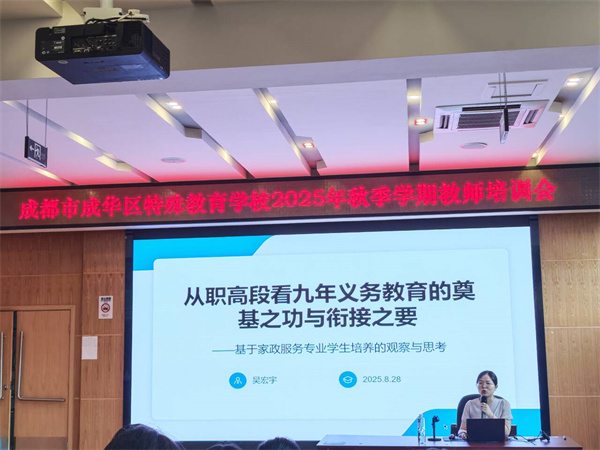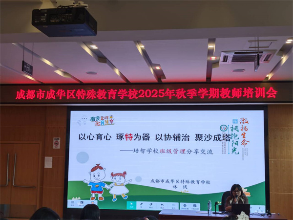 金风送爽,丹桂飘香,又一个诗意盎然的秋天如约而至。乐山师范学院特殊教育学院的四名实习生怀揣着对特教事业的热爱与赤诚,走进成都市成华区特殊教育学校,开启了实习之旅。 岗前蓄力 赋能启航 为助力实习生快速转换角色,适应岗位需求以及夯实专业教学能力,2025年8月25日-29日,学校精心筹备了“笃学砺教 聚力启航”教师岗前培训活动。经验丰富的专家和骨干教师化身引路人,从学校办学理念、特殊学生学情特点,到分层教学方法、个别化辅导技巧,再到课堂安全规范、班级管理妙招,倾囊相授实用干货,引导实习生树立“以生为本”的特教理念,掌握特教课堂教学与班级管理的关键技能。副书记、副校长覃佳利具体介绍了学校出勤、纪律管理制度及教学管理要求;副校长李为苇分享德育、安全管理的制度建设;教育服务中心主任蒋新文则详细解读了学校的后勤安排与相关制度,为实习生的校园生活提供全方位指引。