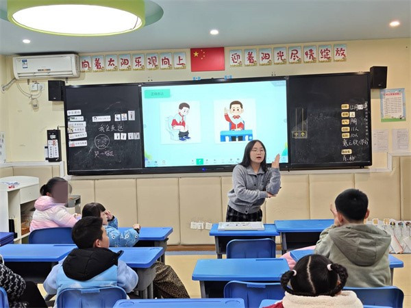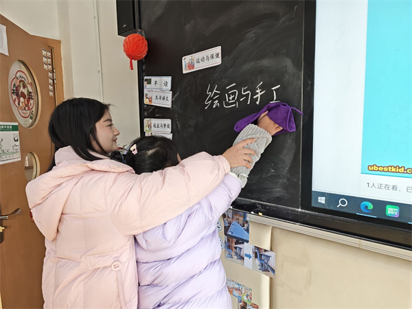 精细管理 温暖护航 实习期间,班级管理成为日常实践的重要一环。实习生们还主动协助班主任处理班级日常事务,参与校园活动策划,陪着孩子们做游戏、练技能。根据特殊学生的行为特点与个性化需求,实习生逐步学习并运用结构化的班级常规管理方法。从协助安排每日视觉日程、引导学生遵守课堂规则,到配合班主任处理学生间的情绪冲突与行为问题,在实践中体会到“预防优于干预”的重要性。通过观察班主任如何运用正向行为支持、强化等策略,逐渐学会在班级中建立稳定而温暖的支持环境,并在指导老师的鼓励下,尝试独立组织课间活动、管理班级过渡环节。班级管理不仅是秩序的维护,更是与学生建立信任关系、促进其社会性发展的重要过程。在与学生朝夕相处的时光里,他们真切体会到特殊教育的责任与温度,也更加坚定了投身特教事业的初心。