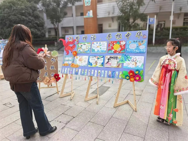 为深化课堂教学改革,落实核心素养培育目标,1月13日,四川天府新区新兴小学精心举办跨学科主题学习成果展。全校各年级、各学科的特色项目集中亮相,一场集趣味性、实践性与创新性于一体的学习盛宴精彩呈现。 本次成果展覆盖低、中、高全学段,各学科立足学生年龄特点与认知规律,设计出丰富多元的驱动性任务。 语文启思:跨学科实践亮底色 语文组的跨学科实践成为成果展的一大亮点,各年级特色项目集中展现了跨学科融合的教学风采。从贴合低龄段认知特点的趣味化实践,唤醒孩子对母语文化的热爱,到聚焦综合能力培养的沉浸式体验,让语言运用与校园文化传播相融,再到深挖文化内涵的经典解读与再创,涵养审美与文化底蕴,直至以深度探究实现思维进阶与认知升华。各学段层层递进的实践设计,尽显语文跨学科育人的独特魅力。