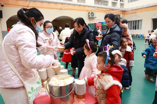 美食共享添喜色,味蕾盛宴庆新年 美味时光如约开启!发糕软糯、汤圆香甜、小猪宝萌趣可爱,各式美食香气四溢,小朋友们满心欢喜地挑选着:“妈妈,我要这个小猪宝,太可爱啦!”“我要拿一块分享给好朋友!”大家自主取餐、快乐分享,在舌尖的甜蜜滋味中,感受新年的浓浓喜庆,体会分享的暖心美好,温馨的氛围萦绕着活动现场。