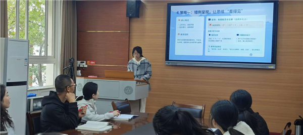 因材施教,以错为源 分享环节,工作室成员蒋丽、李彩霞依次发言。 蒋丽围绕《问题驱动——初中数学思维发展大讲堂》第三章,聚焦因材施教的核心理念,系统阐述了数学学习材料的活用策略。