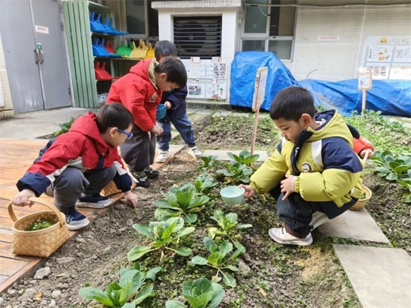 而在户外的班级小菜地里,孩子们则化身为“小小园丁”,热火朝天地进行着“田间大作战”。他们弯腰拔草、细心松土、清理杂物,有的还播下了期待已久的蔬菜种子。在这片充满生机的土地上,孩子们用汗水浇灌着希望,也读懂了“谁知盘中餐”的深意。