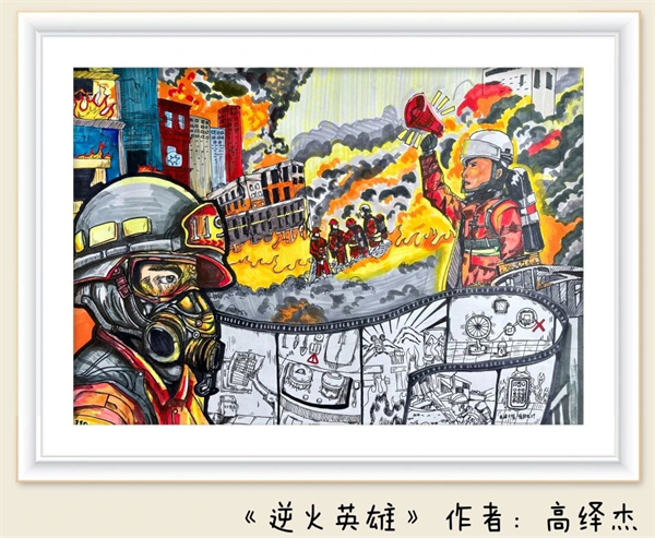 当警报响起,当烈焰升腾,总有一群人逆行而上。成都市东城根街小学的同学们用画笔定格那份守护的力量。