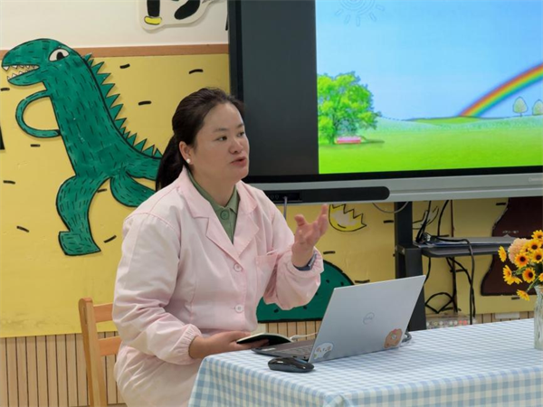 健康护航·细致入微 健康守护,始于细节。叶娟老师围绕保育保健重点工作展开分享,重点解读幼儿视力防控、日常健康监测、疾病预防等核心内容。她介绍,园所通过增加户外光照、定期视力筛查、培养良好用眼习惯等多举措守护孩子视力;同时严格落实晨午检、全日观察、环境消杀、通风换气等制度,用常态化、专业化的保育工作,为孩子筑起坚实健康屏障。