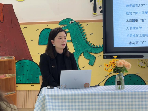 食安守护·安心相伴 膳食安全为幼儿成长之基,健康守护乃学前教育之要。会议中,食品安全员魏芳老师细致介绍食堂管理全流程,从食材甄选、营养配餐、规范烹饪到餐具消毒、餐食留样、卫生管控,各环节严守标准、全程可追溯。食品总监李沁珂主任就幼儿伙食费台账进行说明,严格落实专款专用,以双重保障守护幼儿“舌尖上的安全与健康”。