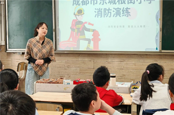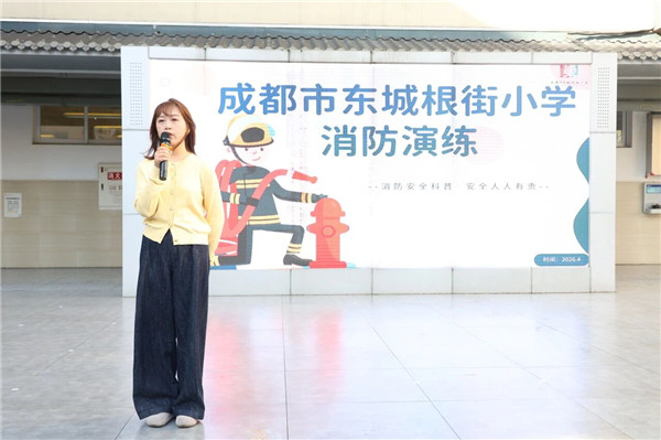 为进一步强化师生防灾避险意识,让安全技能内化于心、外化于行,2026年4月17日,成都市东城根街小学组织全体师生开展消防疏散演练。 训在前:规范动作,入脑入心 演练前,大队部利用校园广播,统一讲解火场逃生的关键要领:低姿前行、掩住口鼻、沿墙行进,并反复强调“快、静、序”三字准则。各班班主任随后在教室内进行细化指导,结合本班教室位置与疏散路径,带领学生回顾重点环节,确保人人知路线、个个懂避险。
