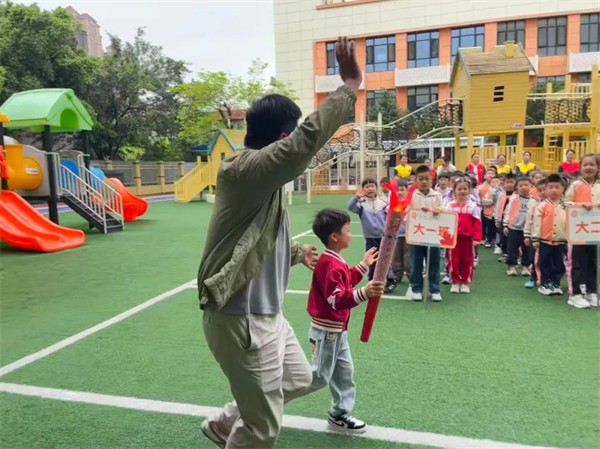 火炬传递环节将开幕式推向了高潮。熊熊火炬在幼儿与家长代表手中依次传递,象征着运动精神的接力与传承。每一次交接都饱含着神圣的使命感,每一束火焰都传递着勇往直前、永不言弃的坚定信念。