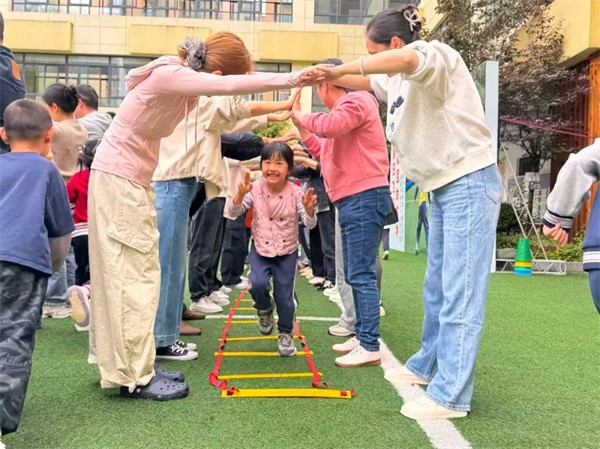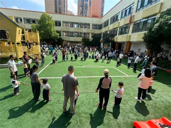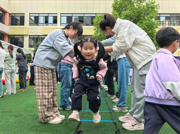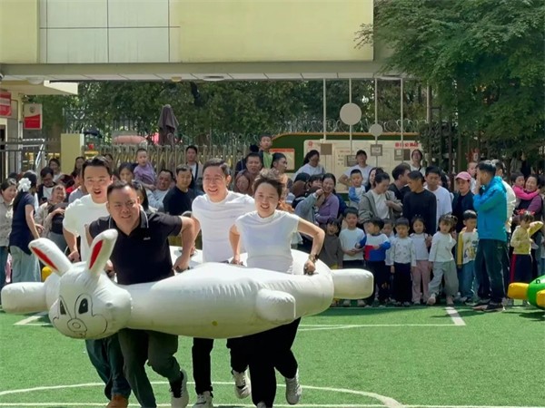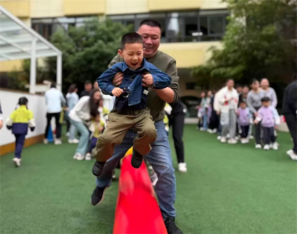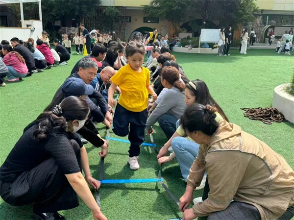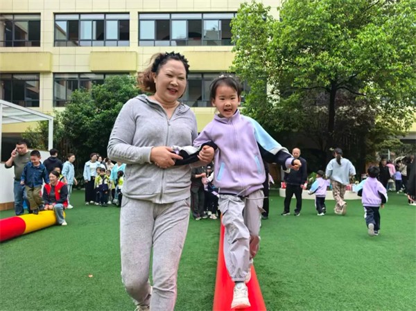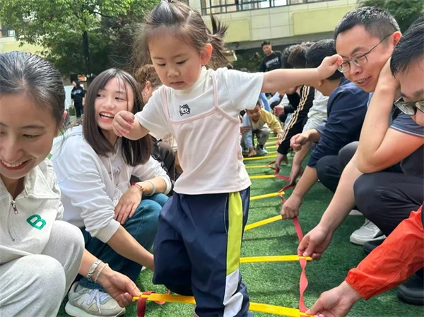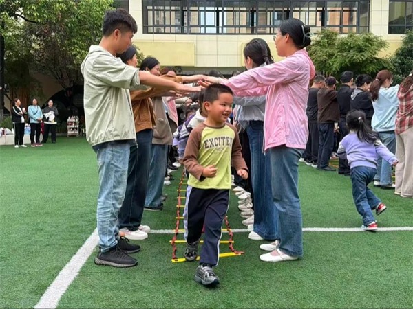 运动会正式开始后,亲子热身活动率先登场。在欢快的旋律中,家长与孩子们一起舒展身体,为接下来的挑战蓄满能量。紧接着,一系列亲子游戏精彩纷呈,包括“金箍棒”“软梯大冒险”“1+1不等于2”“龟兔赛跑”和“动力绳”等。孩子们在赛场上不畏困难,奋勇争先,即使摔倒也立刻爬起,落后了也奋力追赶。他们的勇敢与坚持赢得了现场观众的阵阵掌声。