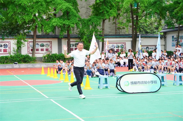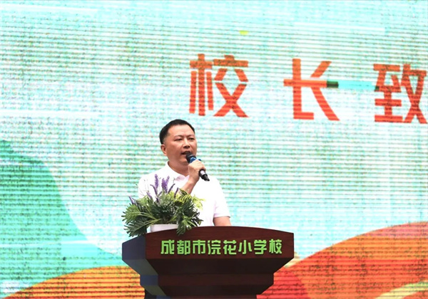 活动中,成都市浣花小学党支部书记、校长刘毅致开幕词,他寄语全体浣小学子在运动中强健体魄、磨砺意志、学会协作,在赛场上收获成长与快乐。同时,他也致敬了退休师长与家长代表,传递了“以体育人、家校共育”的育人初心,赋予了运动会深刻的教育内涵。