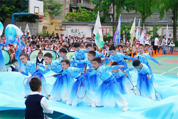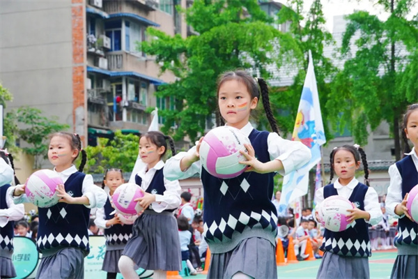 开幕式上的球类主题展演活力登场,各班围绕篮球、足球、排球、羽毛球、乒乓球、软式棒垒球等主题创意编排,步伐铿锵、身姿矫健、神采飞扬,充分展现了浣小学子蓬勃向上、阳光自信的精神风貌。