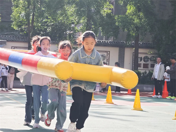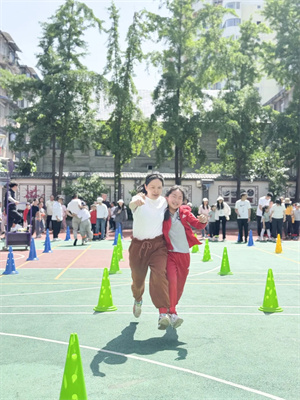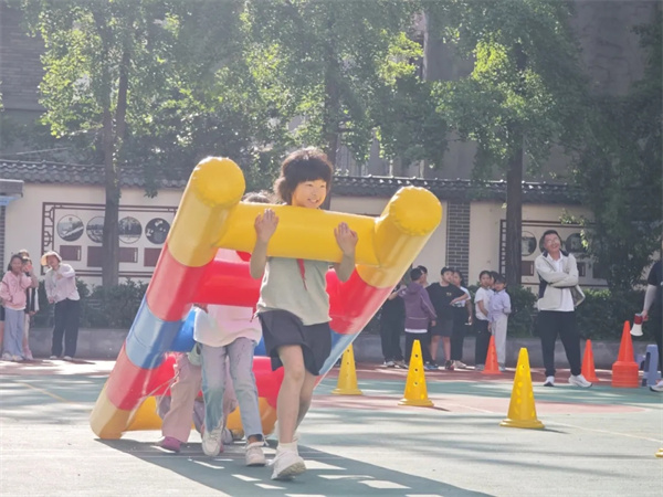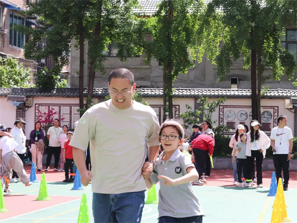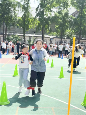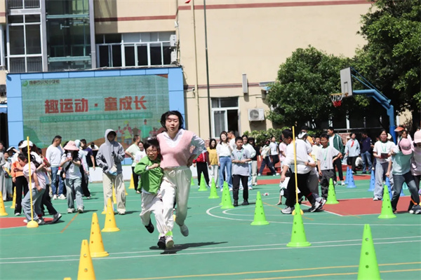 随着趣味运动项目的欢乐启幕,孩子们在奔跑、跳跃、协作、闯关中尽情释放天性,爽朗的笑声洒满了绿茵场。淡化竞技、聚焦快乐的比赛理念,让运动真正成为了童年最快乐的陪伴。亲子两人三足、师生合作运球等温情项目更是大手牵小手、同心共向前,家校携手、师生同心、亲子相伴,在协作中拉近距离、升温情感,凝聚了温暖而强大的育人合力。