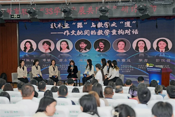 从经验到数据,从模糊到精准,循证教研正在让教研有数据支撑、有方向可循,让“改课”有据可依。 集智·评价 AI与教师的共生之道 如果说课堂与教研是数字赋能教育的核心阵地,那么评价改革就是助力学生成长的重要抓手。 正高级教师、四川省特级教师、成都市双流区实验小学外国语学校校长周晓玲领衔双流实小、双流实小外国语学校、双流区金桥小学的语文教师代表以《技术之“器”与教学之“道”——作文批阅的教学重构对话》为题展开沙龙,共探技术之“器”与教学之“道”的融合路径。
