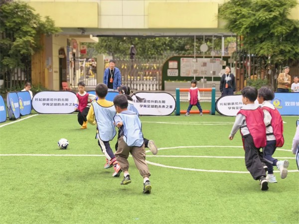 场外喝彩连连,各班的老师、家长志愿者和小朋友们化身为热情的啦啦队,加油声、欢呼声、呐喊声回荡在校园的每个角落,为孩子们鼓劲助威,激励着场上的小球员们努力拼搏。