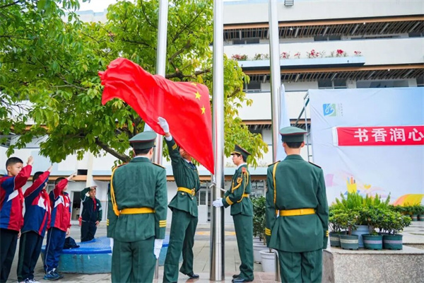 礼赞国旗 殷切寄语 开幕式在庄严的升旗仪式中缓缓拉开帷幕。洞子口职高国旗班同学们迈着整齐划一、庄严坚定的步伐,昂首挺胸、步履铿锵,护卫国旗入场。全体师生肃立注目,升国旗、奏唱国歌,鲜艳的五星红旗迎着朝阳冉冉升起;随后校旗飘扬,校歌奏响,浓浓的家国情怀与昂扬向上的校园精神深深烙印在每一位学子心中。