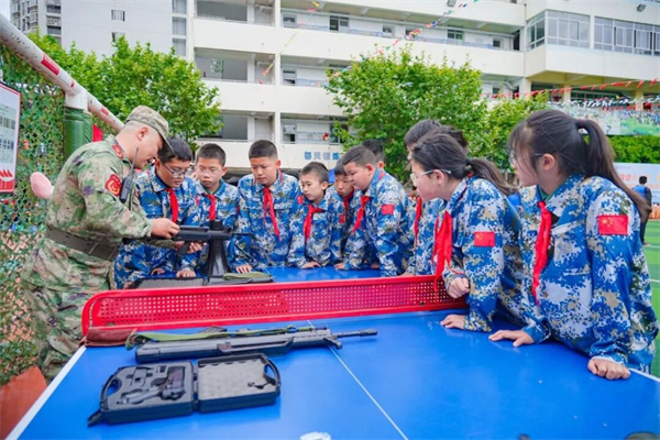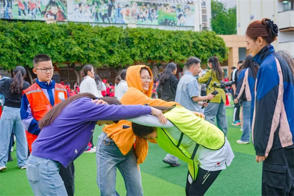 家校聚力 齐传薪火 家校同心竞技环节。教师、家长、来宾携手并肩、全员齐上阵,共同参与国防运动项目。大家奋勇比拼,强军负重接力、戎装传使命、四面聚力拔河。赛场之上,家校同心、合力并肩,步伐坚定、奋勇争先,在默契协作中传递使命担当,在激情比拼中凝聚奋进力量。
