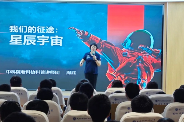 浩瀚宇宙承载人类终极梦想,航天征程书写民族复兴篇章。近日,作为成都市新津区 “全国科普月 —— 爱我中华 科技强国” 主题活动的重要组成部分,“科学家精神进校园” 活动在新津实验高中隆重举行。活动由新津区科学技术协会、科学技术局、教育局联合主办,特别邀请中国航天科技国际交流中心研究员、知名科普作家周武女士,以《我们的征途:星辰宇宙》为题,为该校学子带来一场贯通天地、连接梦想与现实的航天主题讲座,点亮青春航天梦。 回望奋斗路:解码中国航天的 “破茧之路” 讲座伊始,周武研究员以 “跨越卡门线” 为切入点,带领同学们回顾中国航天从艰难探索到自主自强的奋斗历程。从最初面对技术封锁时的攻坚克难,到独立研制 “两弹一星” 铸就大国重器,一段段充满艰辛与荣耀的历史,让在场学子深刻体会到航天人 “自主创新、勇攀高峰” 的责任与担当。 在载人航天领域,周研究员重点解读了始于 1992 年 9 月 21 日的 “三步走” 战略。“上得去、回得来、抓得住”,她用简洁通俗的语言,拆解每一个目标背后航天团队的智慧付出与不懈坚持,让同学们直观感受到中国载人航天事业一步步从梦想照进现实的硬核实力。 �