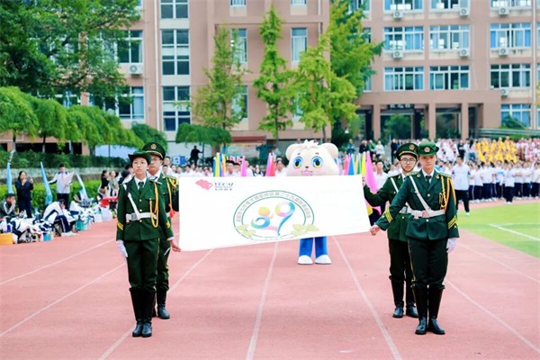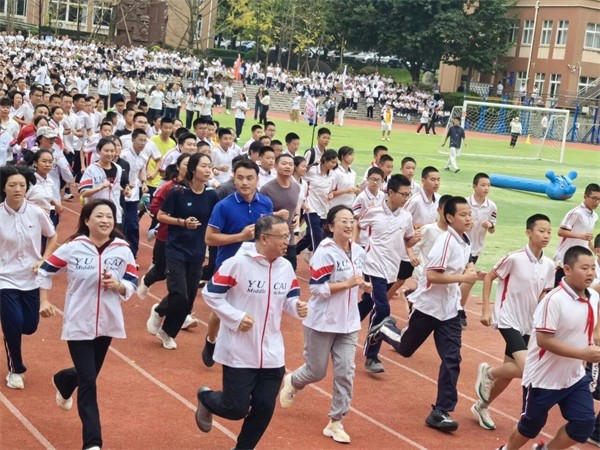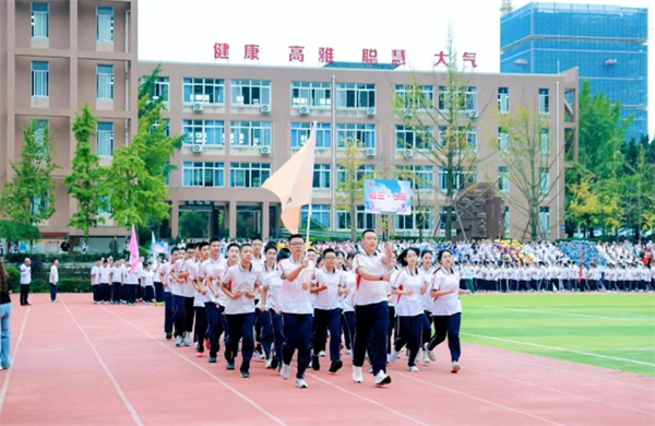 十月的育才校园,秋风送爽丹桂香;十月的育才运动场,青春“燥”起来,活力满格档!就在这金灿灿的美好时节,成都市七中育才学校银杏校区第29届师生运动会火热开启——这场以“活力飞扬展育才风采,传承薪火担强国使命”为主题的运动盛会,直接把校园变成了欢乐与激情的海洋! 开幕式华章:视听盛宴,每一帧都超吸睛 清晨,激昂的音乐一响起,各年级各班在班主任的带领下火速集结,运动场上瞬间被青春气息霸屏,暖场音乐一烘托,全场气氛直接拉满! 随着主持人吴铮然、张睿捷同学元气满满的开场——“十月的育才运动场,青春涌动,热情满怀!”清脆又有力的声音响彻赛场,运动会正式“解锁”!本次盛会也邀请到各位嘉宾共同见证:海棠社区党委书记施光梅女士、锦江区三圣派出所副所长何敏先生,以及家长代表雷均贤女士、乐高慧女士、李小侠女士。 初二年级的同学们率先“炸场”!大型团体操《玉阵·强音》直接美出圈:五星红旗迎风“飒”起来,奥运五环环环相扣超有范儿,金色银杏造型藏着对校园的深情告白。 随后,会牌方阵迈着坚定的步伐引领前行,校旗方阵承载着卓尔不群,大器天下的校训精神,创意十足的会徽设计蕴含深刻寓意,可爱的育才熊吉祥物瞬间点燃全场的欢乐气氛。彩旗队如绚丽彩虹装点赛场,裁判员方阵展现师者担当,运动员方阵则用活力四射的啦啦操《We Rock》将全场气氛推向高潮。 年级风采:各显神通,青春范儿拿捏了 初三年级的“学长学姐天团”自带主角光环!十二个班级,十二个“战斗力满格”的集体,整齐划一的脚步声像战鼓擂动,气贯长虹的口号声喊出超越自我的决心。 初一年级的“中国精神”主题秀更是创意爆棚!十五个班级用青春脑洞玩转民族精神:挺拔身姿诠释“自强不息”,铿锵步伐演绎“艰苦奋斗”,创新构思点亮“改革风采”,默契配合彰显“团结力量”。航天梦想在跃动的舞姿里起飞,工匠精神在精准动作间发光。这场展演,让厚重历史与蓬勃青春双向奔赴,传统文化在少年们的演绎下,焕发出新的生机与魅力。 火炬传递:薪火燃起来,育才精神“代代飙” 最让人热血沸腾的火炬传递来啦!六位“王牌火炬手”接力奔跑,把育才精神“一棒接一棒”传下去。从国家二级运动员唐煜涵同学,到教学成果丰硕的教师代表周洋老师;从守护生命的白衣天使、家委会代表乐高慧女士,到品学兼优的学生会主席翁祺豫同学;最后火炬稳稳交到执行校长王蓓手中。 王蓓高高擎起火炬,奋力点燃主火炬台。随着圣火轰然跃起,炽热的光芒瞬间点亮整个运动场,灼灼火焰映照在每个年轻的脸庞上,点燃了每个人心中那团为梦想而战的烈火。 王蓓在致辞中强调,体育不仅是力量的爆发、速度的较量,更是青春的礼赞。今年夏天成都世运会的敢拼搏、善包容、永向上精神,已成为育才学子应有的灵魂底色。 她进一步阐释:真正的强大不是从未跌倒,而是每次跌倒后都能挺身再战;真正的卓越不是轻松取胜,而是在精疲力竭时依然选择超越自我。学校构建了多元化、立体化的体育课程体系,全力打造人人会运动、处处可运动、时时想运动的活力校园。 随着“我宣布,成都市七中育才学校银杏校区第二十九届秋季运动会”的话音落下,彩旗像潮水般奔涌,猎猎旗帜在阳光下舞出流动的风景,运动场直接变身“青春狂欢场”,这里不仅有速度与力量的battle,更藏着育才人“卓尔不群,大器天下”的精气神。 赛场鏖战:挥洒汗水,拼搏的样子超耀眼 比赛一打响,运动场上瞬间沸腾!各个赛区同步开启“激战模式”,健儿们撒开脚丫子往前冲,汗水甩落的瞬间,都是青春最酷的模样。 今年的运动会上,学校以一场别开生面的“欢乐3000米”跑,为全校师生的冬季长跑活动拉开了序幕。执行校长王蓓、副校长张自力与校长助理谢春玲带头领跑,师生们紧随其后。跑道边,“加油”“坚持”的助威声此起彼伏;奔跑中,师生们即便疲惫也咬牙坚持,用脚步刻下不放弃的誓言。这场集体奔跑,不仅开启了冬季锻炼的征程,更展现了顽强拼搏的体育精神。师生们并肩前行,跑出了活力,更向着健康与成长全力迈进。 师生趣味毛毛虫比赛更是笑料与感动齐飞!队员们跨坐在充气毛毛虫上,喊着“一二一”的整齐口号,迈着同步的步伐在绿茵场上狂奔。赛场上的加油声与欢笑声此起彼伏,经久不息;师生间默契配合、并肩拼搏的场景,更是成为一道暖意融融的风景。 径赛场上,发令枪响,短跑选手如离弦之箭冲向终点,每一次起跑都充满力量;中长跑运动员则用坚韧的毅力诠释着坚持的意义。最引人注目的当属班级接力赛,队员们配合默契,接力棒在他们手中稳稳传递,每一次交接都是信任与责任的传承。 田赛区域同样亮点多多!跳高场上,运动员助跑、起跳、过杆,身姿轻得像燕子,一次次挑战更高极限;跳远赛中,一道道优美的弧线划过沙坑,每一次腾跃都在刷新更远;铅球比赛区,沉重的铅球在手中划出有力的抛物线,力与美的结合超震撼。而在集体跳远和集体跳绳的赛场,默契的协作成为亮点,整齐划一的腾跃与此起彼伏的弧线,共同谱写出集体力量的轻盈韵律。 随着各项赛事陆续收官,即时颁奖环节紧接着展开。裁判老师们刚统计完成绩,获奖名单一公布,现场立刻响起祝贺的掌声。学校领导和老师们走到赛场边,为获奖班级和个人颁发荣誉证书与奖牌。当奖牌映照出少年们眼中的