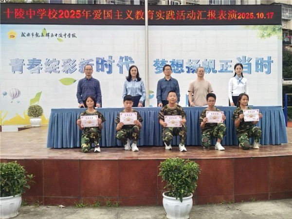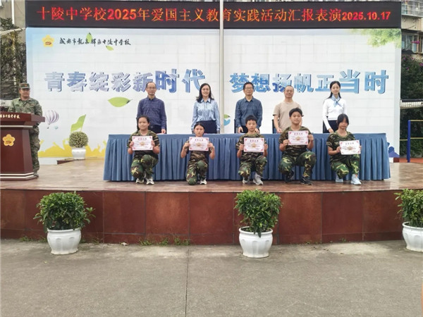 当金秋的风拂过操场,当迷彩的身影点亮校园,成都市龙泉驿区十陵中学2028届全体新生的爱国主义教育之旅,在10月的晨光中正式启程。这不是一场简单的训练,而是一次关于责任、勇气与成长的精神洗礼,让爱国的种子在汗水里扎根,让青春的底色因磨砺而鲜亮。 10月13日的操场,2028届的同学们身着整齐的校服,眼神里满是期待与庄重。爱国主义教育实践活动动员大会在此刻拉开帷幕,副校长李勇走上讲台,用铿锵有力的声音为同学们点燃信念的火种。他叮嘱大家,要把训练中的苦当作成长的养分,把队列里的严当作自律的标尺,在五天里学会坚持、懂得协作,让爱国情怀从口号变成刻在骨子里的行动力。 动员会后,五天的日常训练成为同学们锤炼意志的熔炉。五天里,汗水是成长的印记,坚持是青春的注脚。从零散的个体到团结的集体,同学们在重复的训练中,把爱国从口号揉进了每一个动作、每一次坚持里,让这份情感变得具体而鲜活。 汇报表演 副书记徐兴忠宣读表彰名单,与会领导为优秀学员颁奖,每一份荣誉都是对拼搏的肯定。七年级八班的钟芷萱同学作为优秀学员代表发言,她分享了训练中的成长与感悟:“爱国不是口号,是我们站好每一次队列、做好每一次动作的认真,是我们对集体、对祖国的赤诚。”最后,李勇总结致辞,他肯定了同学们的蜕变,鼓励大家将爱国热忱延续到未来,以青春之力书写报国篇章。 从动员大会的思想唤醒,到五日训练的行动淬炼,再到汇报表演的成果绽放,十陵中学2028届爱国主义教育实践活动,以“情、行、志”三维发力,让爱国从精神感召落到青春躬行。这份浸润在汗水与深情里的爱国教育,必将成为同学们成长路上的精神底色,让他们以更坚定的姿态,在未来的岁月里,做爱国精神的传承者与践行者!(李林) |