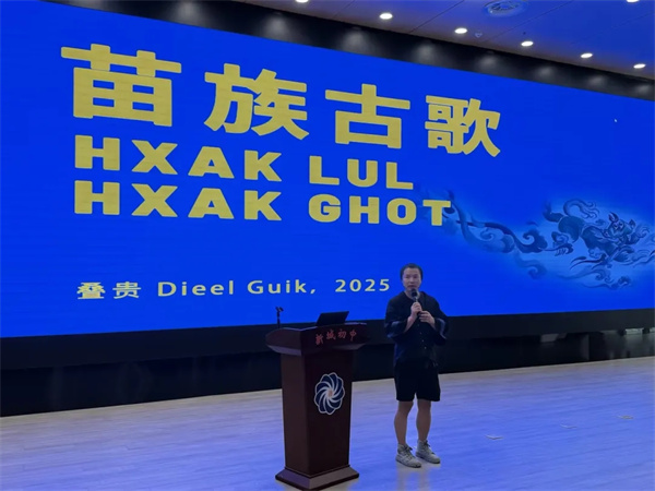 千年苗歌,声声不息。2025年10月16日,成都市双流区2025年中小学生“艺术大师进校园”系列活动在成都市双流区九江新城初级中学开启“苗族古歌”专场之旅。此次活动是一次美育课堂的生动延伸,更是一场让新城师生近距离触摸非遗瑰宝、感受民族文化魅力的珍贵相遇。 千年苗歌颂文脉 青春校园绽美育 专家简介 本次“苗族古歌”专场活动邀请到了深耕苗族文化领域多年的苗族音乐人、跨界作者叠贵老师,他带着对苗族文化的深厚热爱与专业积淀,为师生们带来了一场兼具知识性、趣味性与艺术性的文化盛宴。 领导致辞 活动伊始,德育处主任谭杰中代表新城师生对叠贵老师的到来致以热烈的欢迎及诚挚的感谢。他表示,优秀传统文化是美育的生动教材。作为美育践行者,新城初中始终致力于将传统文化融入校园教育,而此次“苗族古歌”专场活动,正是学校文化育人实践的又一次重要探索。他希望同学们能够用心聆听、用情体悟、用力传承,做文化自信的传承者。同时,也希望老师们能以此次活动为契机,将非遗文化融入日常教学,让美育之花在校园持续绽放。 活动现场 伴随着一曲悠扬婉转的苗族古歌,叠贵老师开启了这场文化艺术分享。为了让师生们更直观、更深入地了解苗族文化,他采用“多感官融合”的呈现方式:通过一张张极具民族特色的图片,展示苗族的服饰、建筑、节庆习俗,让大家直观感受苗族文化的视觉魅力;播放精心剪辑的视频,记录苗族古歌在田间地头、节庆活动中的真实演绎场景,还原古歌的原生语境;讲述一个个充满奇幻色彩的苗族神话故事与传奇人物事迹。而最令人沉醉的,莫过于叠贵老师现场演唱的多首苗族古歌,让在场师生深深沉浸其中。 在分享过程中,叠贵老师还动情地讲述了自己多年来收集、整理和创作苗族古歌的心路历程。同学们纷纷露出敬佩的神情,由衷的感叹与称赞,对“文化传承”的意义有了更真切的理解。 美育之花映初心 做美育践行者·做文化自信传承者 触摸文化根脉,增强文化自信 历史长河奔流不息,文化基因代代相传。苗族古歌承载着苗族先民的智慧与情感,是中华民族文化宝库中不可或缺的璀璨明珠。希望同学们能以此次活动为起点,在未来的日子里,始终保持对传统文化的好奇心与探索欲,主动去了解、去感受、去传承更多像苗族古歌这样的非遗瑰宝,让文化的种子在心中生根发芽,让民族的精神在传承中绽放光芒。(翁玉华 通讯员 李德琳) |