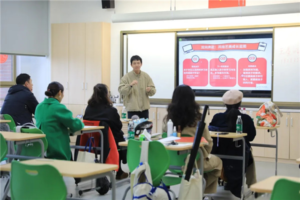 在随后的“一对一”沟通环节中,家长们手持为每位孩子定制的“个性化成绩分析报告”,与学科教师进行了高效交流。 共识共为,前瞻生涯新航道 高二年级是学生能力进阶与生涯规划的关键期。此次开放日顺势而为,将对话焦点从“当下”延伸至“未来”。家长会上,班主任结合新高考背景,介绍了多元升学路径,引导家长将目光从单一分数转向学生的学科潜能、专业兴趣与长远发展,从而帮助家长为孩子明晰未来方向。