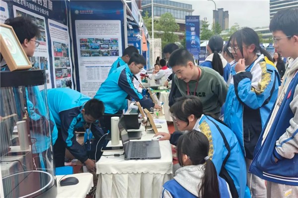 智趣展区引热潮,玉林学子展风采 作为高新区青少年科学院创造发明与创新设计分院,玉林中学在活动中精心设置了特色展区。专属智能伙伴“小林”、科普知识竞赛、创意徽章设计、激光切割实验套装盲袋等互动活动,吸引了众多师生驻足体验,展位前人头攒动,气氛热烈。高二年级贾璟濠、钟宇航、刘子睿、杨玉蓉四位同学热情地为参观者服务,赢得了与会师生的一致好评,充分展现了玉林学子出色的实践能力和积极向上的精神风貌。