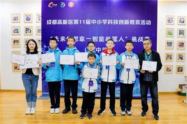 在“未来创想家——智能机器人”挑战赛(初中组)中,赛事设置机器人对抗与创意制作答辩两轮环节,面对全区38支强劲队伍,玉林中学学子沉着应战、表现亮眼,一举夺得团体一等奖2项、团体二等奖2项。其中罗煜扬、李博焱、刘宇恒、龙宇彤、黄子轩、曹博轩同学荣获区一等奖,张鉴豪、林皓轩、张颂洋、胡钰月、谭俊豪、罗泽睿同学荣获区二等奖。陈秋薇、朱晓鸥、乔惠建、张雪梅老师被评为优秀指导教师。