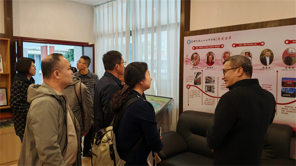 为迎接这场教育盛会,学校精心策划,以“真诚友好、务实高效、开放共享、共同进步”为原则,旨在通过全方位、沉浸式的展示与研讨,让柳州的教育同仁不虚此行。 探访校园:一步一景,浸润“三自”文化 在学校管理干部的带领下,校长们沿着一条融汇了学校历史与育人理念的路线深度参访。从“自信、自立、自强”的三自广场出发,成都三十七中“三自”办学理念与文化气息扑面而来,让校长们深深动容。校史室里,一张张老照片、一件件旧实物,无声诉说着学校发展历程与时代变迁;生涯文化墙前,学生们色彩斑斓的成长路径规划,生动展现了新高考背景下,学校助力学生个性发展的前瞻性布局与实践探索。