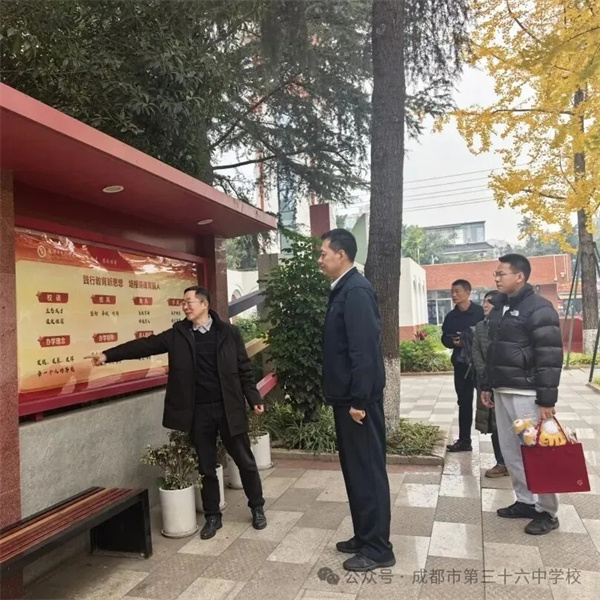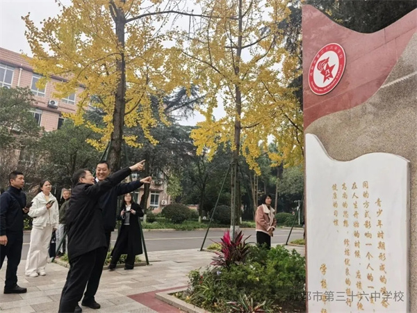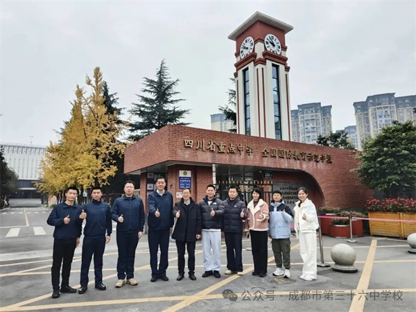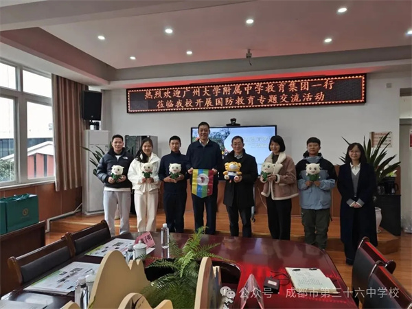 2025年11月22日,广州大学附属中学教育集团国防教育发展研究中心主任雷鹏俊一行九人走进成都市第三十六中学校(以下简称:成都三十六中),开展国防教育专题交流活动。成都三十六中党委书记吴雪峰、校长谢江林携中层干部代表热情接待并陪同交流。