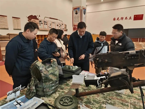 在谢江林的陪同讲解下,代表团依次参观了学校国防文化主题景观、国防教育主题展馆、国防装备库、国防专用教室、国防无人机馆及校史馆。来宾们深入了解了学校将国防文化系统融入校园环境的实践路径,并在国防教室亲身体验了射击等国防实训项目,对学校“环境育人、实景感人”的国防教育模式给予高度评价。