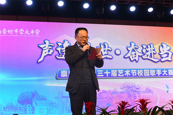 11月27日晚,崇州市崇庆中学运动场舞台灯光璀璨,以“声逢盛世 奋进当歌”为主题的学校第30届艺术节校园歌手大赛决赛在此激情上演。来自少创班、高一、高二、高三的21组选手齐聚舞台,用歌声展现青春风采,为全校师生带来一场视听盛宴。