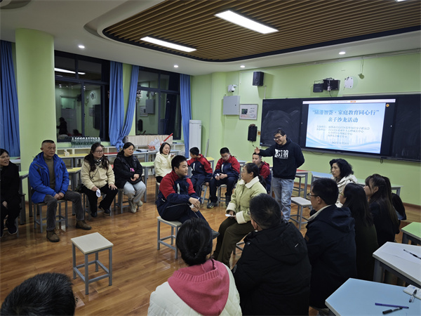 青春期叛逆撞上父母焦虑,亲子小摩擦常升级为“战争”。为破解初中亲子沟通困局,成都市大弯中学心理组策划了“化解亲子冲突”主题沙龙,让亲子在互动中掌握调解技巧,为家庭教育注入温情。 破冰启航:笑声打破隔阂,温暖拉近距离 活动伊始,趣味破冰游戏迅速点燃氛围。家长与孩子并肩协作,拘谨被笑容取代,亲子距离快速拉近,为深度交流筑牢基础。