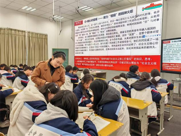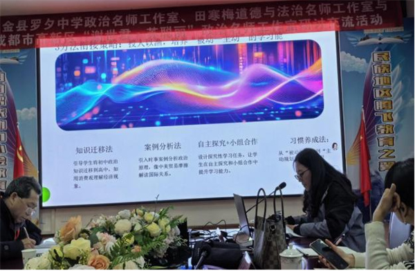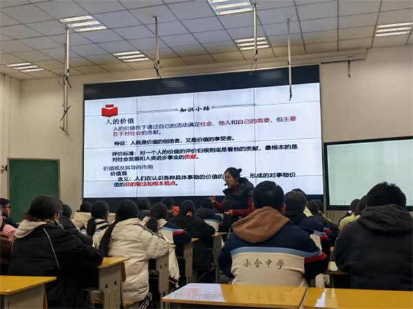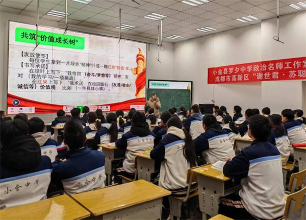 初冬时节,“研”途芬芳。2025年11月25日,应小金县教育局教育发展中心之邀,“谢世君·苏聪丽”政治名师工作室一行赴小金县与“罗夕中学政治名师工作室”“田寒梅道德与法治名师工作室”开展以“探索初高中思政课一体化建设双融合,破解思政教学困境”为主题的送教帮扶活动。 成都高新区“谢世君·苏聪丽”政治名师工作室始终践行教育均衡发展理念,长期致力于薄弱地区的教育帮扶与送教活动。近年来,工作室连续三年承担四川省“国培计划”中西部骨干项目(省培项目),扎实推进乡村教师“1+1+10”学习共同体建设,以系统化、常态化的培训机制,持续赋能乡村教师专业成长。 同课异构绽芳华 五位思政教师围绕“价值追求”与“价值观教育”展开精彩授课。 初中学段,美兴中学苟荣茂老师以“神州系列”为切入点,巧妙激发学生兴趣,彰显思政教育的时代性;木坡中学马雪璐老师则以数字为线索,以《南京照相馆》影片贯穿课堂,营造出富有思辨意味的教学情境;成都银都紫藤学校王姣老师执教精品示范课《在劳动中创造人生价值》,以“遥控器吊车放鸡蛋”趣味实验导入课堂,迅速激发学生学习兴趣,随后以“鸡蛋的成长记”为主线串联教学内容,让学生在体验式学习中深刻领悟“劳动创造价值、奋斗成就人生”的核心要义。