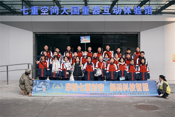 为拓宽中学生视野,厚植家国情怀,让青少年直观感受中国科技发展的磅礴力量,成都市泡桐树中学同文分校组织学生赴校外科技教育基地——成都七重空间大国重器体验馆,开展以“穿梭七重空间,解码科技智慧”为主题的研学实践活动。在这里,沉浸式课程将打破课堂边界,带大家穿越时空、驰骋天地,在实践中触摸大国重器的温度与力量!